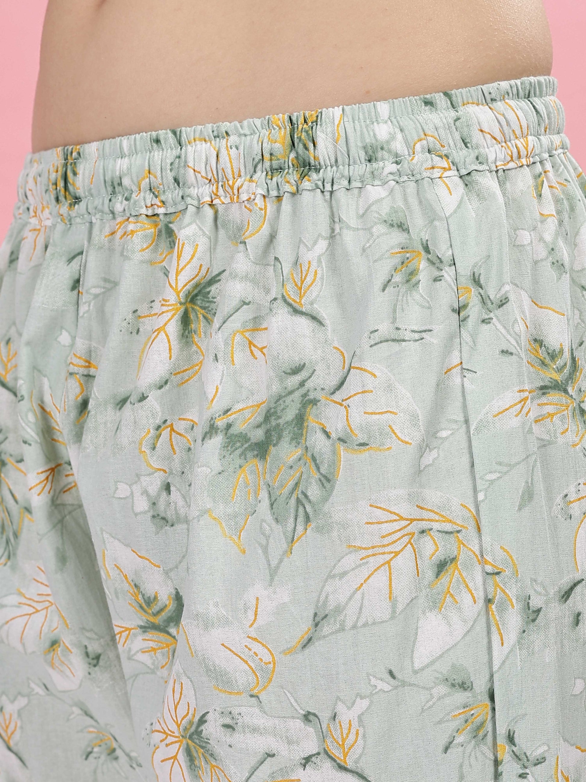 Pastel Green Cotton Pyjama Set for Women