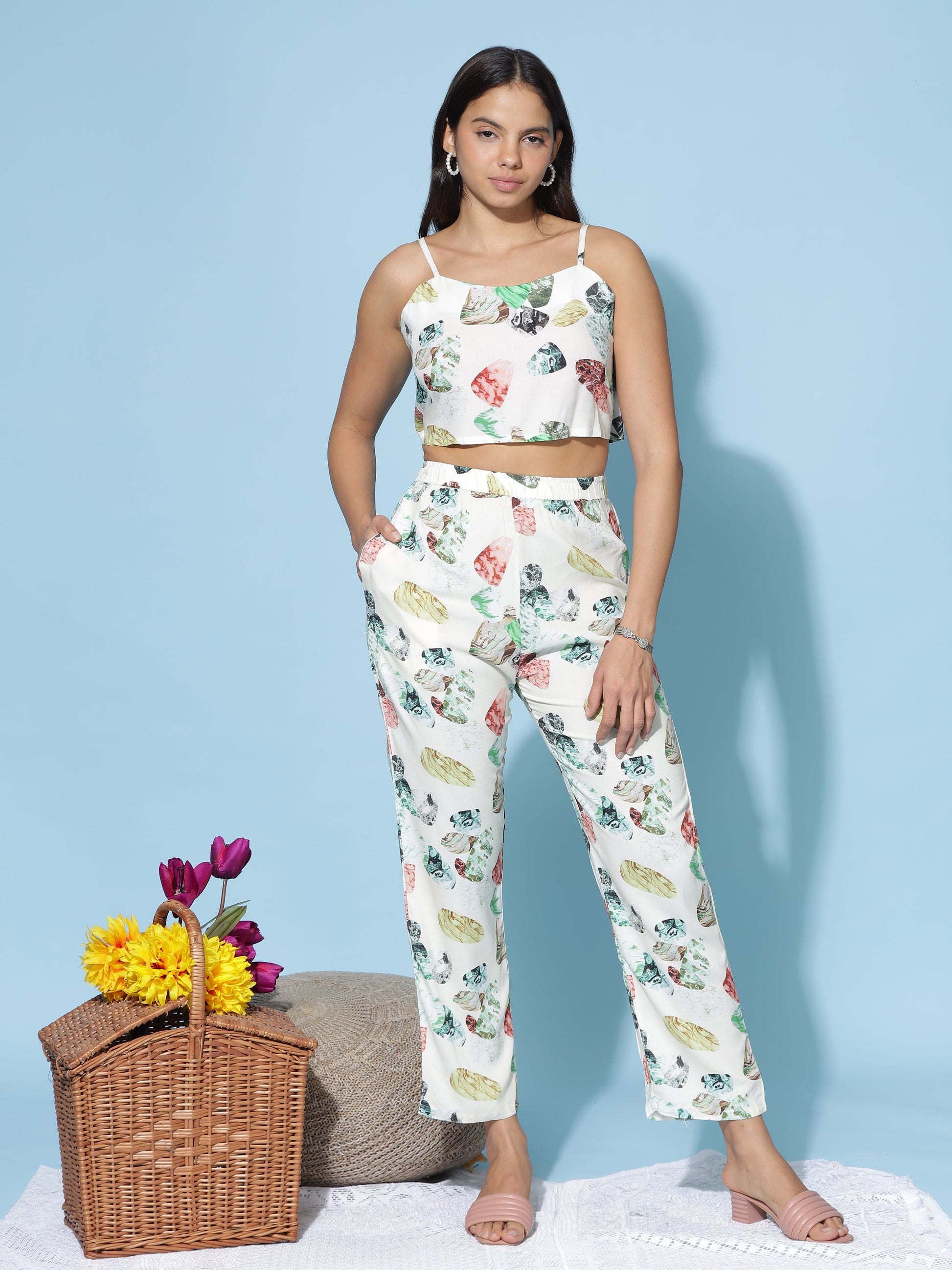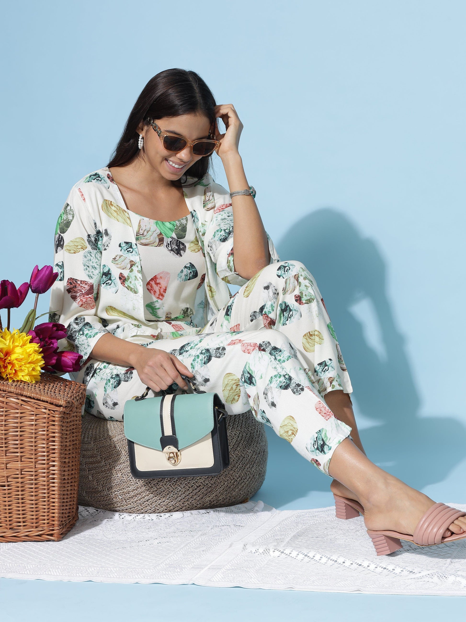 2. Stunning Floral Print: Our Co-Ords Set is adorned with an exquisite all-over floral print that adds a vibrant touch to your leisure time. This pyjama set transforms into a charming statement piece, radiating elegance even during your downtime.