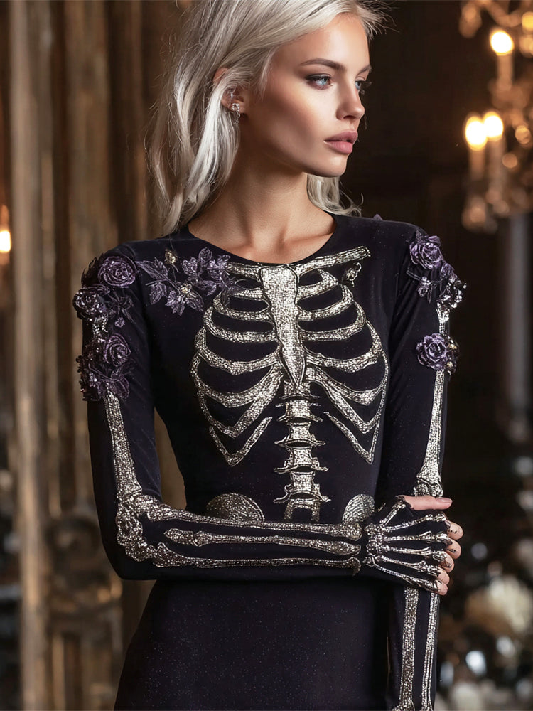 Sequin Skull Floral Art Women's Maxi Dress