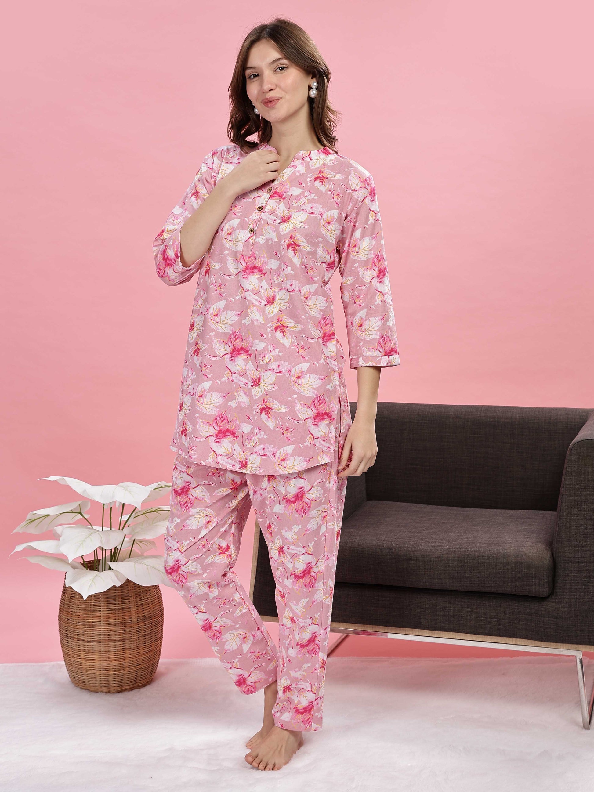 Soft Pink Cotton Pyjama Set for Women Comfortable Sleepwear