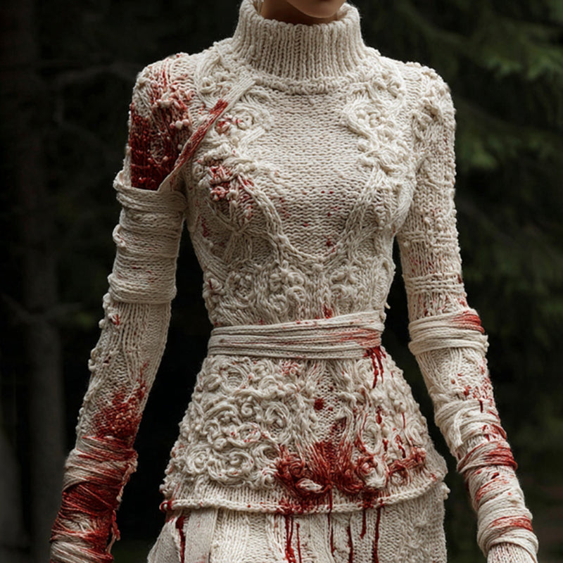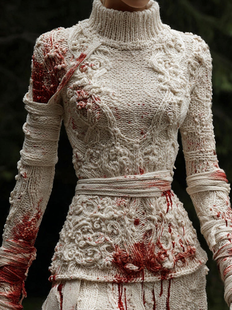 Women's Halloween Art Cozy Knit Turtleneck Sweater