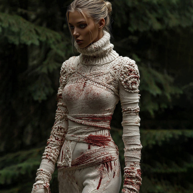 Women's Halloween Bandage Art Cozy Knit Turtleneck Sweater