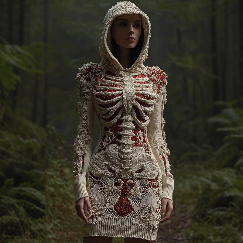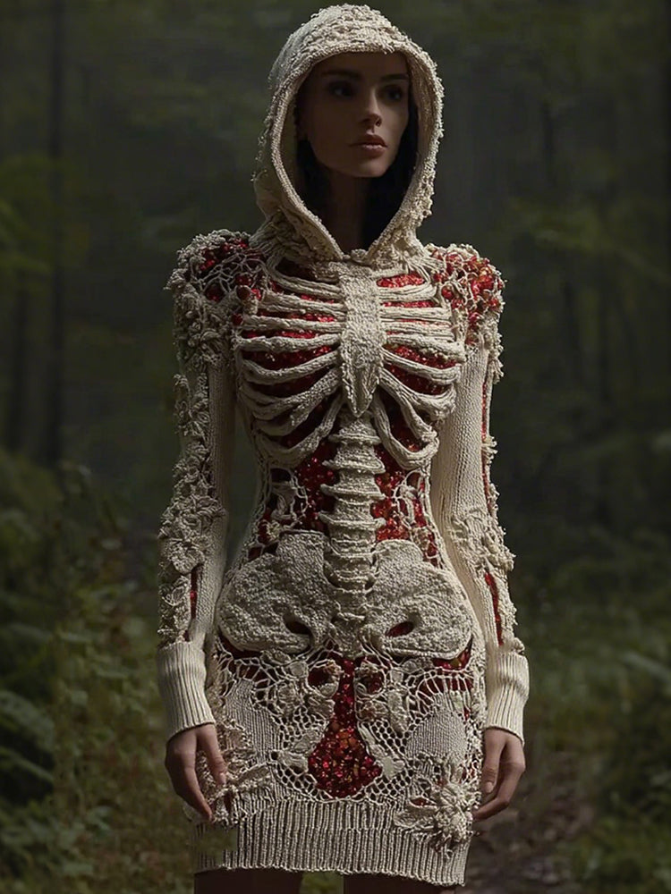Women's Halloween Sequined Skull Pattern Comfortable Knit Hooded Mini Skirt