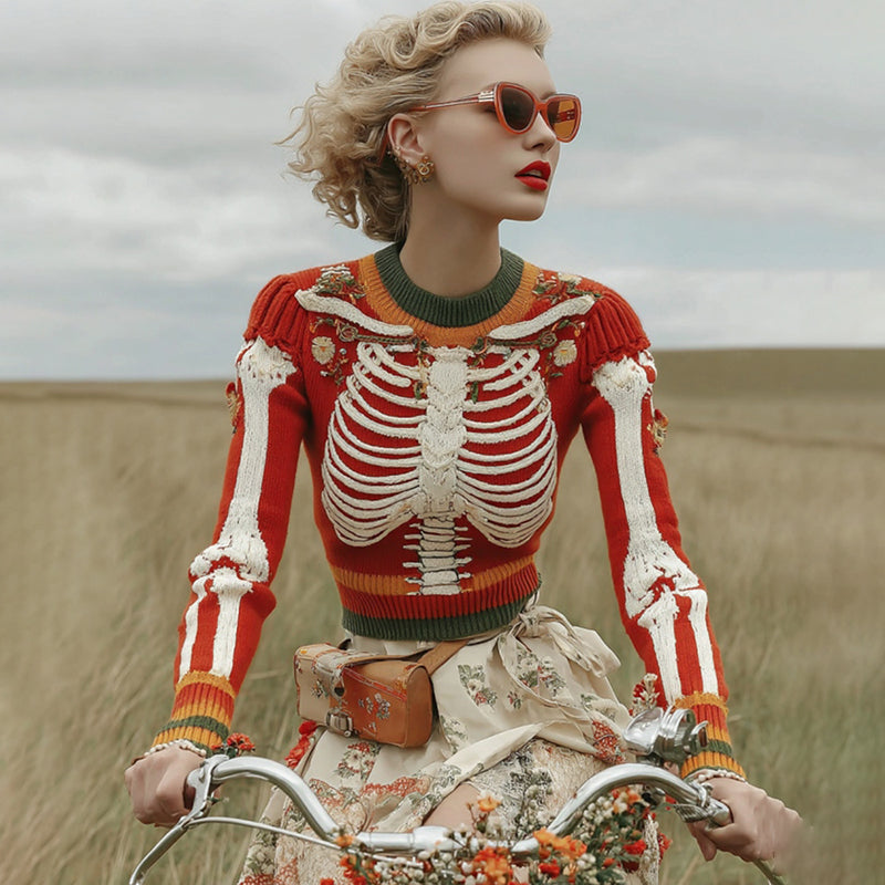Women's Vintage Anatomy And Floral Art Cozy Ugly Sweater
