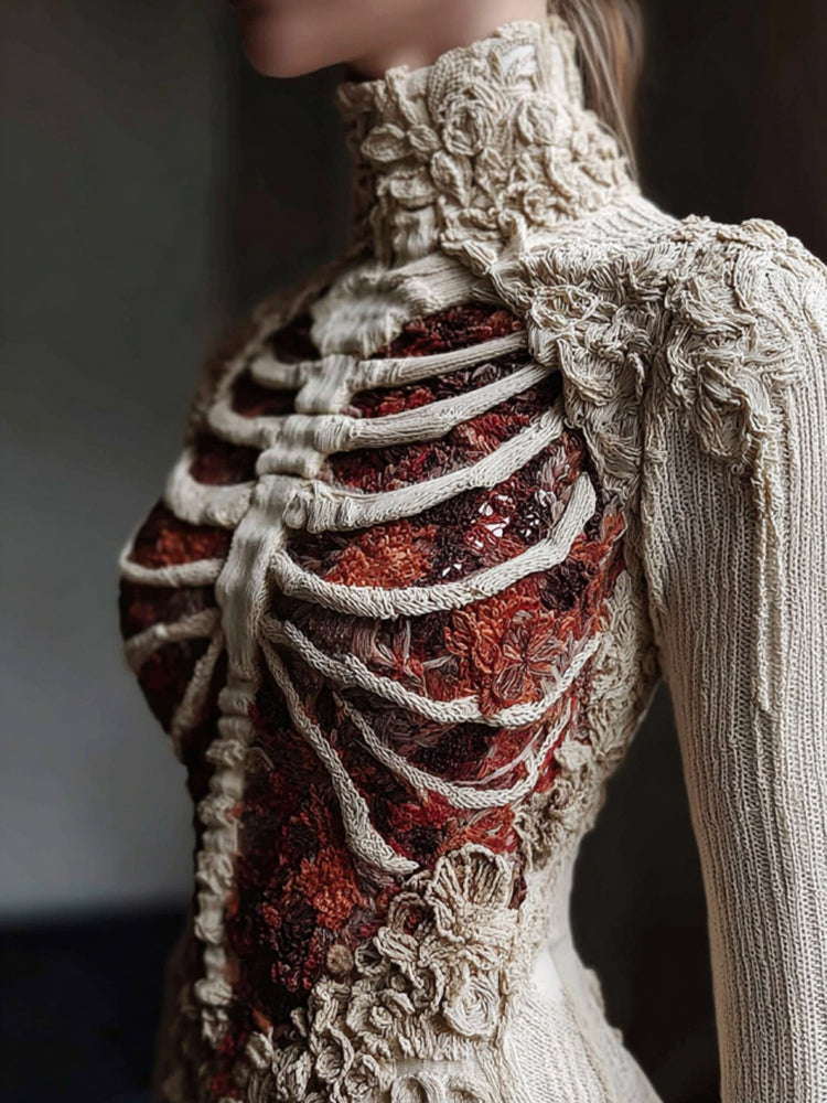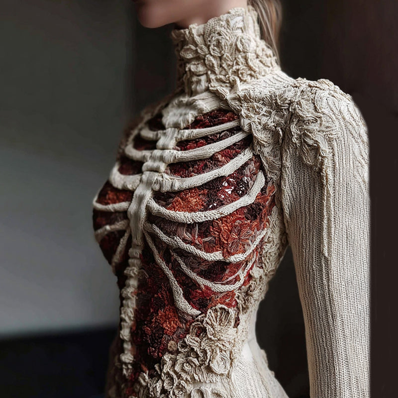 Women's Vintage Skeleton & Floral Art Cozy High Neck Sweater
